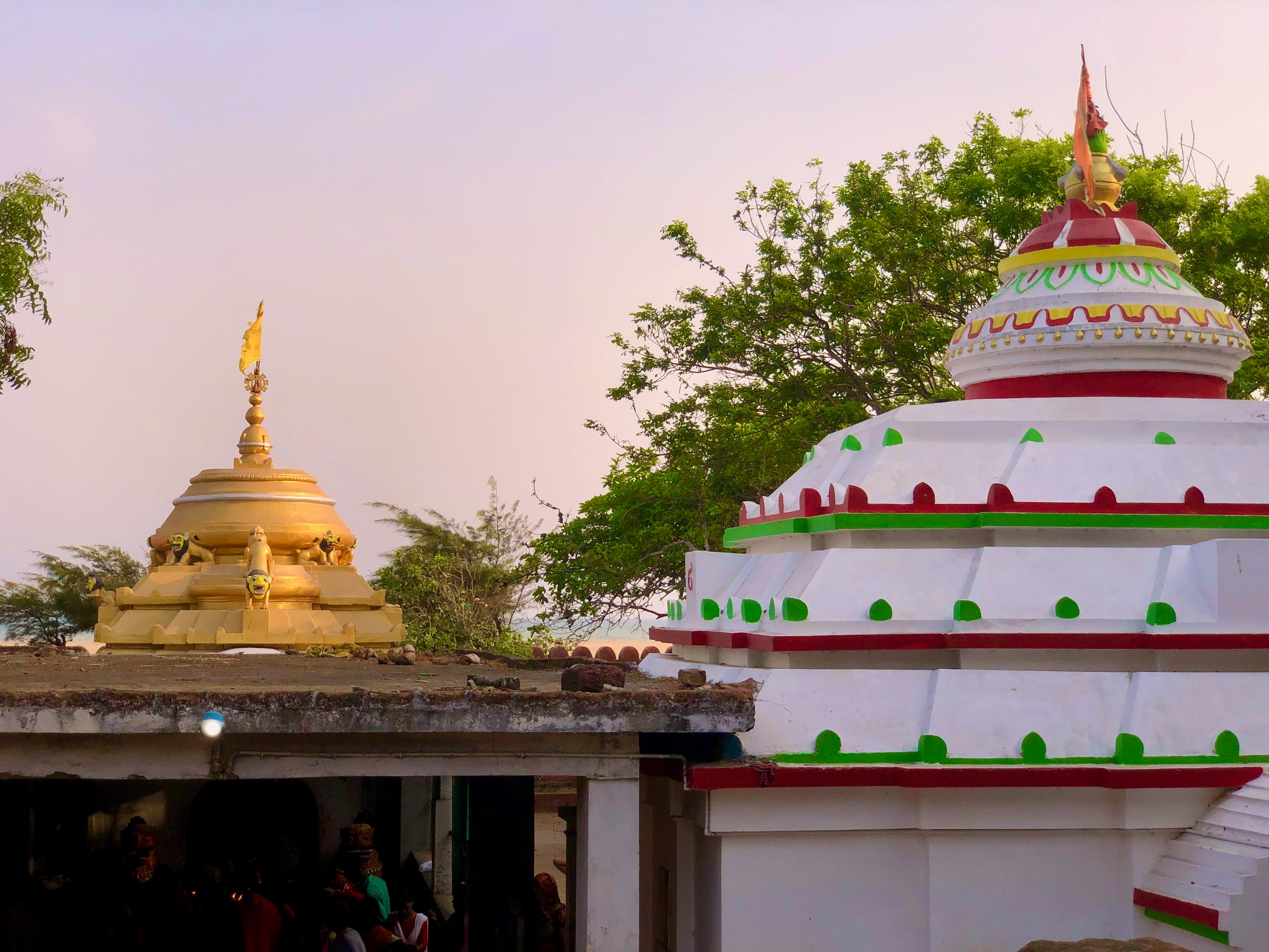 The section reminded me of the ECR between Chennai and Pondicherry, although there was no commercialization. This section of the trip was really picturesque, with woodlands on one side and the ocean on the other. The Ram Chandi Temple was our first stop of the evening. For the first time in the entire drive, Google Maps displayed an inaccurate destination. Nonetheless, we relied on locals for assistance in reaching the temple.