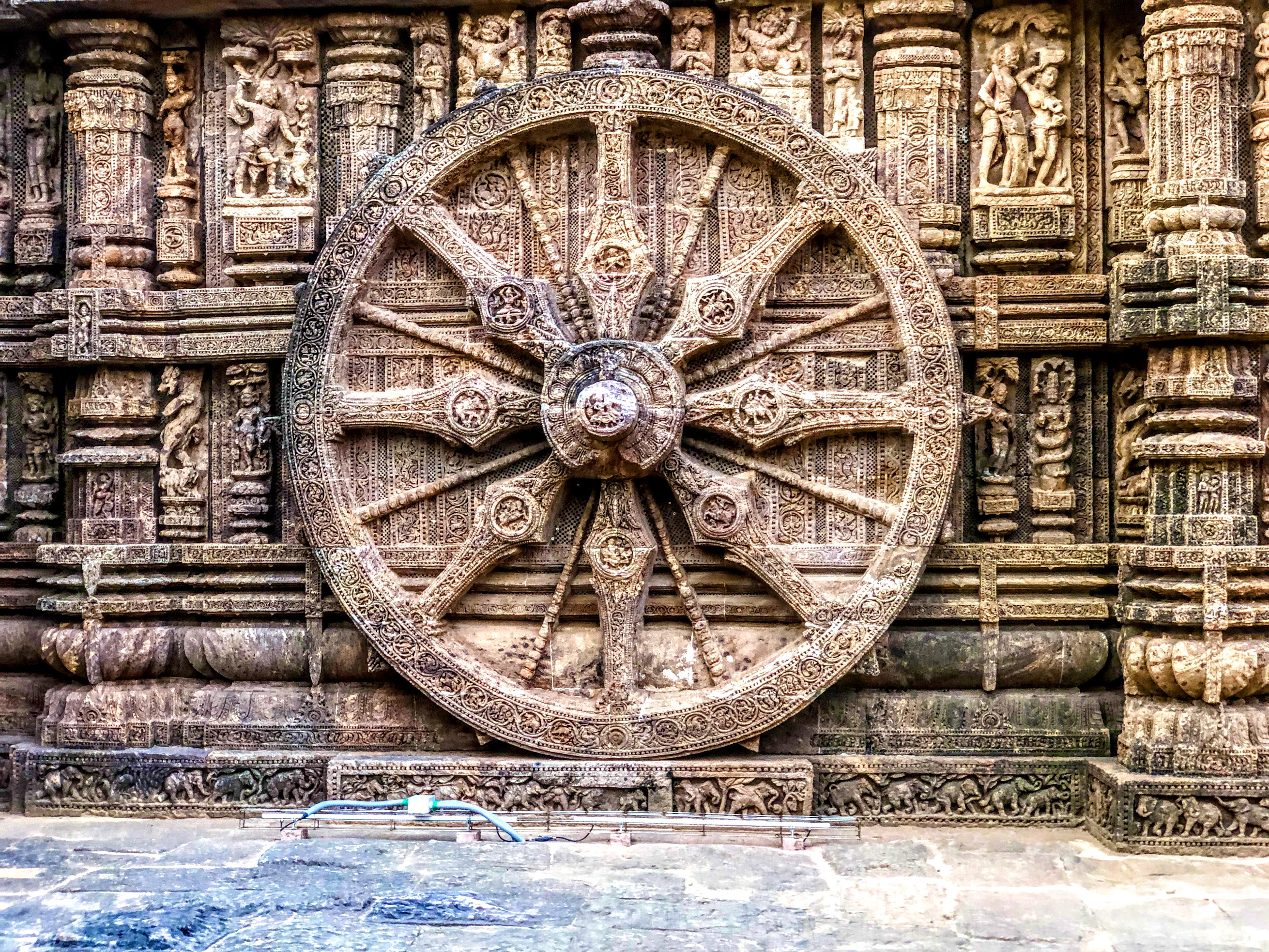 The Konark Sun Temple’s 12 stone-carved wheels depict the 12 months of the year. These wheels, which are located at the temple’s base, also display the time. The wheel’s spokes create the shape of a sundial. The time of day may be determined by observing the shadow generated by the wheels.