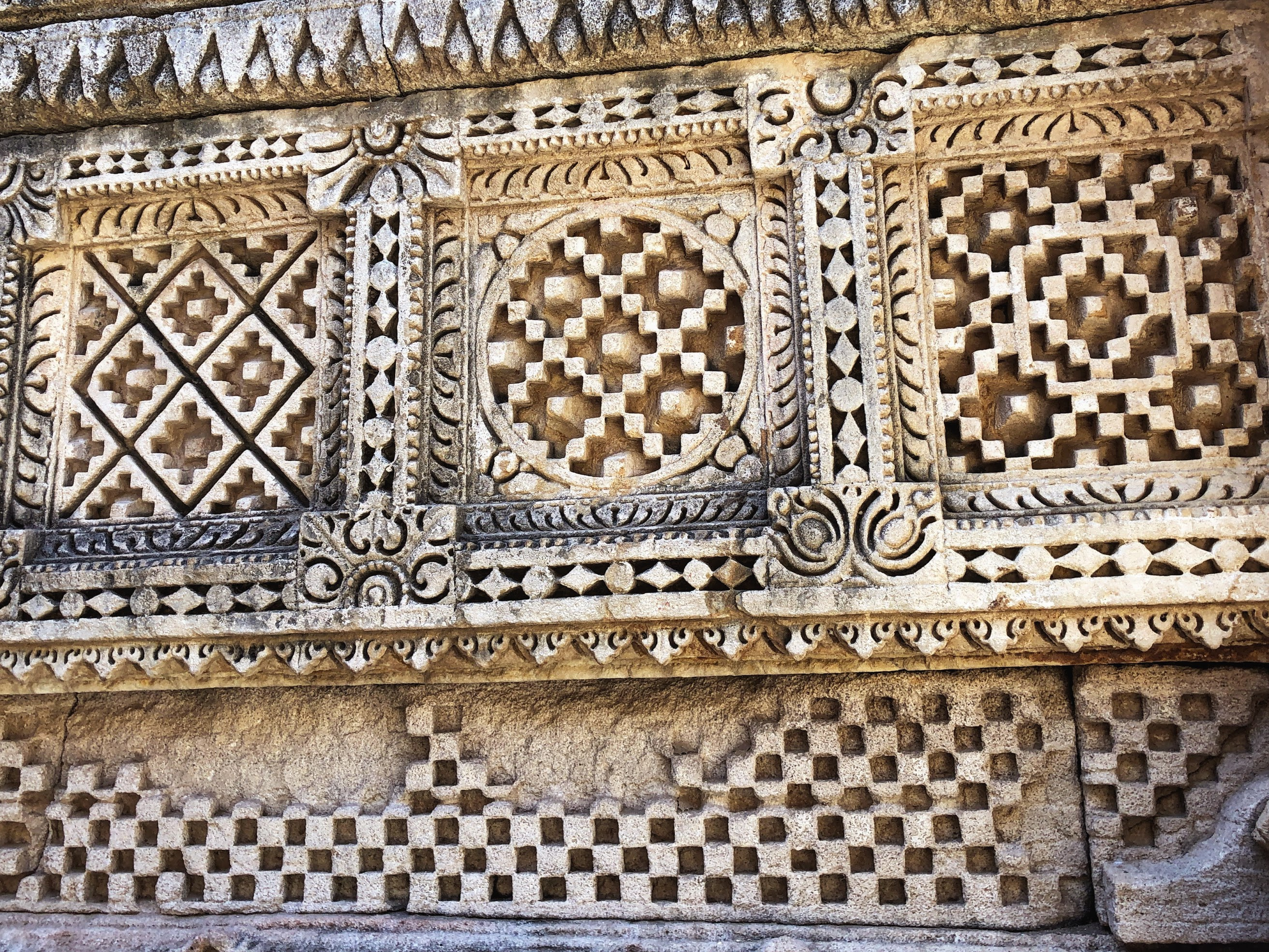 Zooming in on the panorama: Exquisite details and the elegant craftsmanship of the main structures and the mesmerizing step well