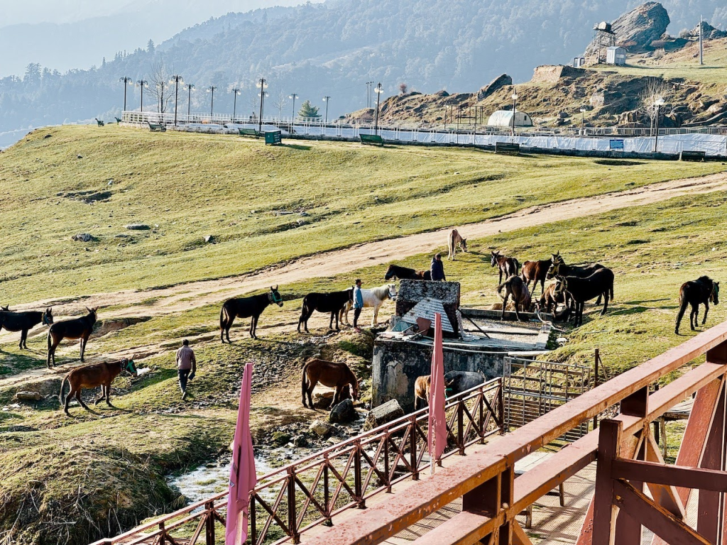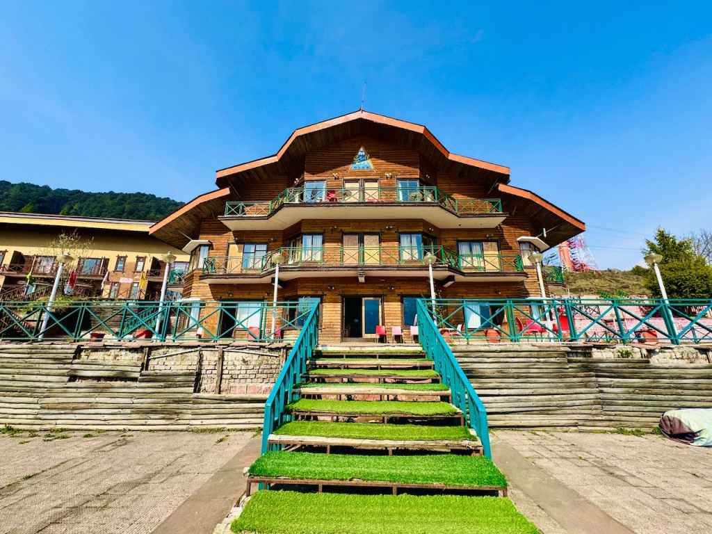 The chair car ride was an exhilarating experience, an open-air ascent through the pristine Himalayan beauty. Suspended high above the ground, the panoramic views of snow-covered peaks, dense green valleys, and rugged terrains felt surreal. The crisp mountain air and the sense of openness heightened the thrill. Initially, I felt a twinge of nervousness, gripping tightly to my phone, and even paused recording, fearing it might slip and tumble into the vast wilderness below. But as the ride progressed, the mesmerizing views unfolded, leaving us captivated and grateful for this one-of-a-kind journey. In just four minutes, we arrived at the summit, where our resort “The Cliff Top Club” awaited a short 200-meter walk away. Resort staff helped transport our luggage, assuring us that even though the chair car handled baggage, it was perfectly safe.